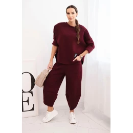 Dámský komplet teplákový z model 21489462 materiálu se širokými nohavicemi bordový - K-Fashion