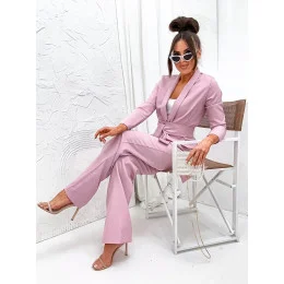 Dámska súprava v púdrovo ružovej farbe - voľné sako a široké nohavice (8167)