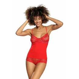 Súprava Victoria v červenej farbe.skladá sa z košieľky, ktorá je zdobená polopriehľadnou elastickou čipkou s kvetinovým motívom v oblasti poprsia. Úzke popruhy sú elastické. Súprava je z väčšej časti vyrobená z veľmi príjemného elastického materiálu (mikrovlákno). Súčasťou sú aj nohavičky s vysokým pásom a krásnou elastickou čipkou vpredu.