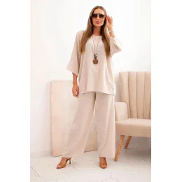 Dámský komplet z model 21193162 blůza s náhrdelníkem a kalhoty béžový - K-Fashion