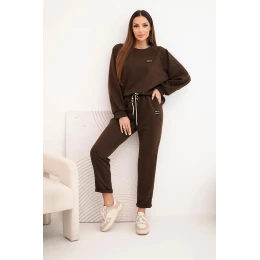 Dámský komplet z viskózy s mikinou a kalhotami hnědý