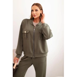 Dámský komplet z viskózy s rozepínací mikinou a kalhotami khaki model 21285295 - K-Fashion