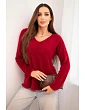 Dámsky mäkký pletený sveter s výstrihom do V bordovej farby