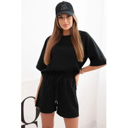 Dámsky maslový set s blúzkou s krátkym rukávom a šortkami s gumičkou čierny