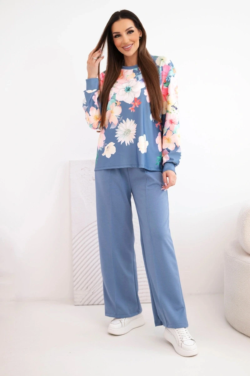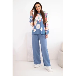 Dámský máslový viskózový komplet s květinovým vzorem a širokými nohavicemi model 22014235 - K-Fashion