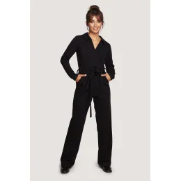 My milujeme kombinézy a vy si ich zamilujete tiež. Elegantné detaily - decentný výstrih do V zakončený golierom, široký strih nohavíc a opasok na zaväzovanie na záver: tento jednodielny pletený overal je hotovým top outfitom.