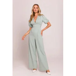 Informácie o výrobku: tkaná textília jednodielny overal hlboký výstrih do V a v páse krátky rukáv manžety široké nohavice so záhybmi v páse skrytý zadný zips čiastočne podšitý Náš model je vysoký 171 cm a nosí veľkosť S navrhnutý a vyrobený v Poľsku