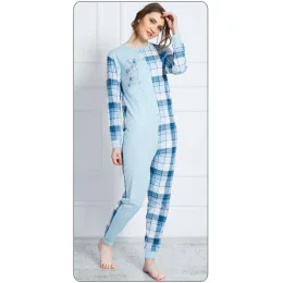Dámsky bavlnený overal Medvedík s čiapkou. Overal je plne elastický - na jednej strane ho zdobí obrázok medvedíka, na druhej strane celoplošná potlač nórskeho vzoru. Dlhé nohavice sú zakončené elastickými lemami. Bavlnený materiál je pružný a príjemný na dotyk.