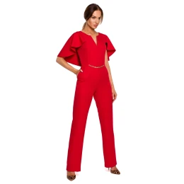 Sila je v detailoch. Tieto pohodlné nohavice, ktoré sú ženskou kreáciou na výnimočné príležitosti, majú výnimočne ženský dizajn, plášť a retiazku zdobiacu hladkú prednú časť obleku. Oblek má skryté zapínanie na zips.