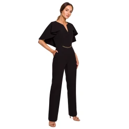 Sila je v detailoch. Tieto pohodlné nohavice, ktoré sú ženskou kreáciou na výnimočné príležitosti, majú výnimočne ženský dizajn, plášť a retiazku zdobiacu hladkú prednú časť obleku. Oblek má skryté zapínanie na zips.