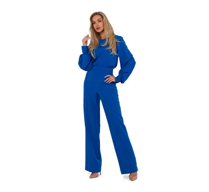 Kombinéza s dlhými buffovými rukávmi a okrúhlym výstrihom. Zapínanie na zips a gombík. Nohavice kombinézy s rozšíreným lemom. Bez podšívky. Navrhnuté a vyrobené v Poľsku.