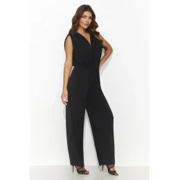 Tento elegantný dámsky overal je k dispozícii v šiestich výnimočne nadčasových farbách. Uvoľnený strih poskytuje pohodlie a ľahkosť pri nosení. Má elegantné riasenie vo výške ramien. Výstrih v tvare srdca nielen zvýrazňuje poprsie, ale aj opticky predlžuje krk a dodáva mu jemnú eleganciu. Dlhé a široké nohavice sú nadčasovým módnym riešením, ktoré sa hodí ku všetkým druhom obuvi. Kombinéza je vyrobená z klzkého a veľmi príjemného materiálu, takže jej nosenie je skutočným potešením. Je ideálnou voľbou pre ženy, ktoré ocenia klasiku a pohodlie v jednom.