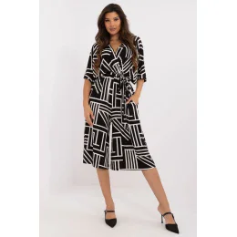 Tento elegantný overal s geometrickým vzorom je ideálnou voľbou na každý deň, do práce aj na spoločenské udalosti. Je vyrobený z ľahkej, priedušnej tkaniny s prímesou elastanu, ktorá poskytuje pohodlie a voľnosť pohybu. Model má krátke rukávy a oblúkový výstrih, ktorý jemne zvýrazňuje dekolt. Šnurovanie pri krku dodáva eleganciu a opasok v páse umožňuje opticky zoštíhliť postavu. Nohavice culotte s dĺžkou po kolená vytvárajú moderný a trendy strih. Ďalšou výhodou sú praktické, bočné vrecká. Je to ženská a funkčná voľba na rôzne príležitosti.