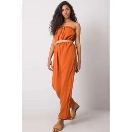 Ležérna kombinácia bez rukávov je pohodlným a štýlovým návrhom na každý deň. Je vyrobená z kombinácie bavlny a polyesteru, vďaka čomu kombinuje priedušnosť s odolnosťou materiálu. Hladký vzor a obdĺžnikový výstrih s všitou gumou jej dodávajú decentný elegantný vzhľad a zároveň zabezpečujú pohodlie pri nosení. Dlhé nohavice a elastický pás s všitou gumou zvýrazňujú postavu a zabezpečujú voľnosť pohybu. Kombinácia nemá žiadne zapínanie, vďaka čomu sa veľmi ľahko oblieka. Celkový dojem dotvárajú ozdobné gombíky na prednej strane a zapínanie na opasok, ktoré dodáva štýlu charakter a umožňuje regulovať strih v páse. Ideálna na každodenné vychádzky, pohodlná, praktická a módna v jednom.