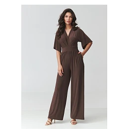 Tento elegantný dámsky overal je ideálnym dizajnom pre ženy, ktoré oceňujú eleganciu, pohodlie a nadčasový štýl. Model má ženský strih s prekrývajúcim výstrihom, ktorý jemne zvýrazňuje postavu a dodáva stylingu ľahkosť a eleganciu. Prispôsobený pás krásne modeluje proporcie tela a široké nohavice dodávajú celkovému vzhľadu moderný charakter a zabezpečujú úplnú voľnosť pohybu. Tento elegantný overal na špeciálne príležitosti je ideálny na večierky, rodinné oslavy, obchodné stretnutia alebo večerné vychádzky. Vďaka starostlivo navrhnutému strihu spája pohodlie pri nosení s módnym vzhľadom, takže je skvelou alternatívou klasických šiat. Kratšie rukávy zabezpečujú pohodlie a praktické vrecká zvyšujú funkčnosť modelu.