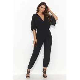Tento elegantný dámsky overal je k dispozícii v ôsmich módnych farbách. Jeho strih dokonale zvýrazňuje ženskú postavu a spája eleganciu s pohodlím. Voľné rukávy siahajúce po líniu lakťového záhybu zaručujú voľnosť pohybu. Overal je mimoriadne zmyselný vďaka výstrihu do V, ktorý nielen zvýrazňuje poprsie, ale aj opticky predlžuje krk. Dlhé nohavice s praktickým lemom na šnúrku dodávajú overalu štýl a vďaka nim vyzerá skvele s rôznou obuvou. Materiál je splývavý a príjemný na dotyk, pričom zaručuje pohodlie. Je ideálnou voľbou pre ženy, ktoré ocenia módu, ale neobetujú pohodlie.