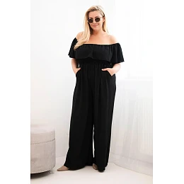 Dámský overal Plus Size s volánem a krátkým rukávem černý