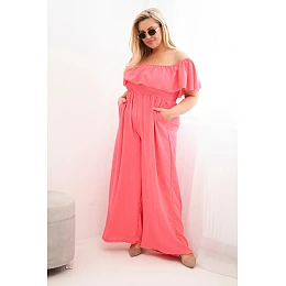 Dámský overal Plus Size s volánem a krátkým rukávem růžový