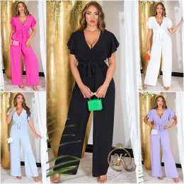 Dámsky overal so širokými nohavicami a opaskom na zaväzovanie 0000OV07814 White - Koucla