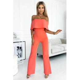 Dámský overal v broskvové barvě s volánkem a odhalenými rameny model 18478723 - Bergamo