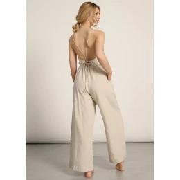 Dámský overal od značky Muydemi. Overal je vyroben z viskózy, ideální pro horké letní dny. Overal má dlouhé široké nohavice s délkou po kotníky a má tenká ramínka.