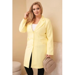 Dámský plášť Plus Size dlouhý s límcem a kapsami žlutý