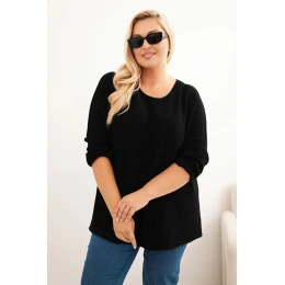 Dámsky plus size sveter s lodičkovým výstrihom čierny