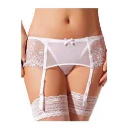 Podväzkový pás 032 Ewana - biely - elegantný dizajn - vyrobený z jemného tylu a vyšívanej čipky - dĺžka popruhov sa dá ľubovoľne nastaviť