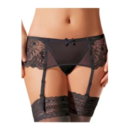 Podväzkový pás 032 Ewana - čierny - elegantný dizajn - vyrobený z jemného tylu a vyšívanej čipky - dĺžka popruhov sa dá ľubovoľne nastaviť