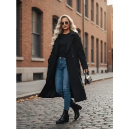 Dámsky dlhý kabát oversize, ktorý spája klasickú eleganciu s modernou ležérnosťou. Vďaka zapínaniu na gombíky a praktickým bočným vreckám pre väčšiu funkčnosť je jeho jednoduchý, ale štýlový strih vhodný na každodenné štylizácie aj elegantnejšie komplety.
