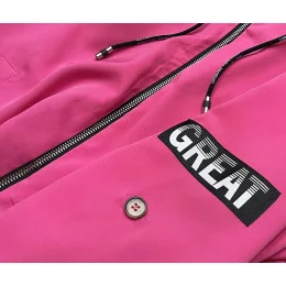 Přehoz se zapíná zipem a má dvě kapsy bez zapínání. Vzadu je v pase guma. Rukávy je možné ohrnout. Přední část modelu má délku k bokům a zadní část má délku do poloviny stehen.
