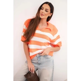 Dámsky pruhovaný sveter s golierom a krátkymi rukávmi oranžový