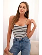 - Detaily: tenké ramienka, pruhy, zaoblený výstrih