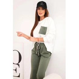 Táto štýlová a pohodlná dámska tepláková súprava je ideálnou ponukou pre ženy, ktoré oceňujú pohodlie a módny vzhľad. Mikina z mäkkého, voľného materiálu bola obohatená o kontrastné vrecko s roztomilým akcentom v tvare srdca, ktoré celku dodáva ženský šarm. Nohavice s elastickým pásom a šnúrkami na stiahnutie zaručujú dokonalé prispôsobenie sa postave a úplnú voľnosť pohybu.