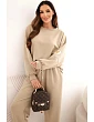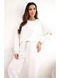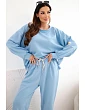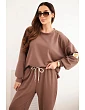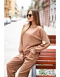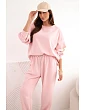 Štýlová dámska súprava, ktorá spája pohodlie s módnym dizajnom. Mikina s honosným, lesklým motívom na prednej strane priťahuje pozornosť a dodáva celému oblečeniu výnimočný charakter. Nohavice s jednoduchým strihom a elastickým pásom a šnúrkou na stiahnutie zabezpečujú pohodlie a voľnosť pohybu.