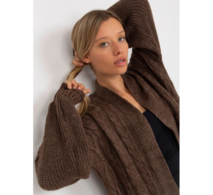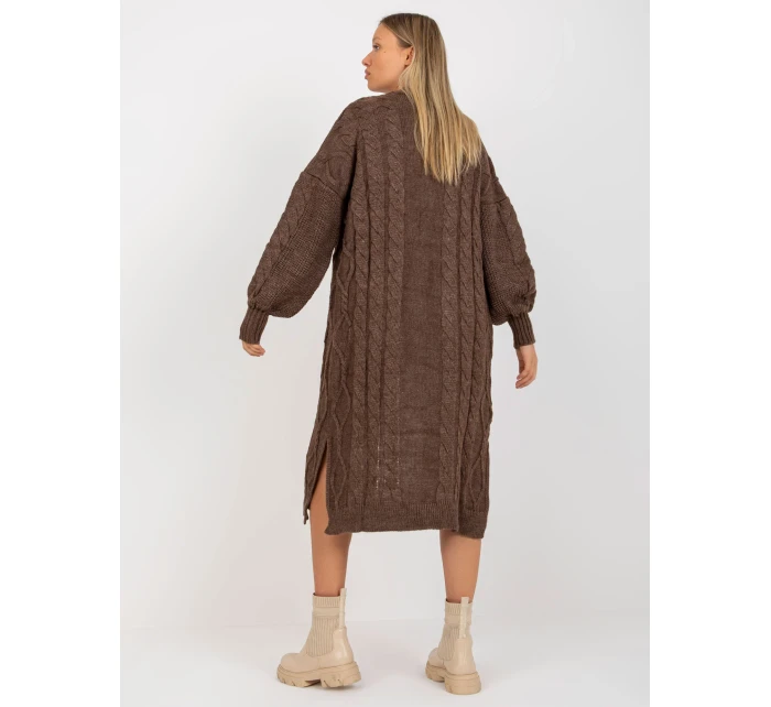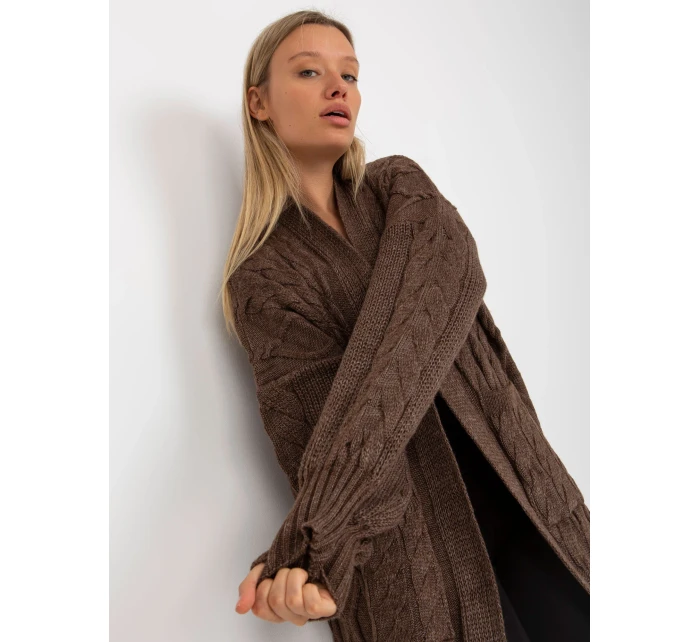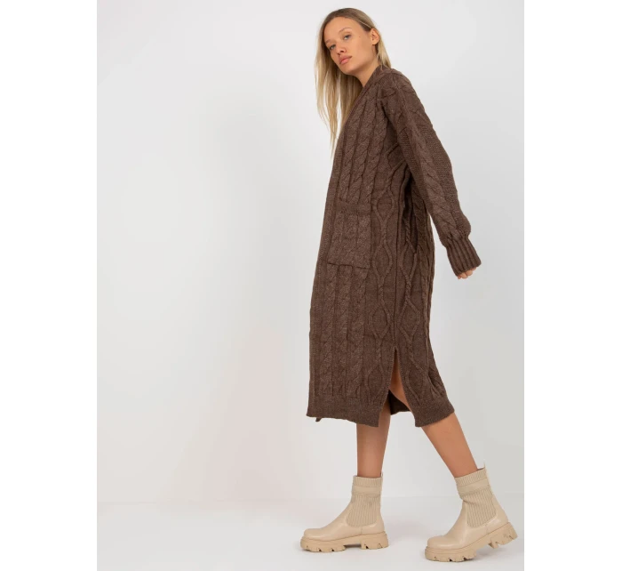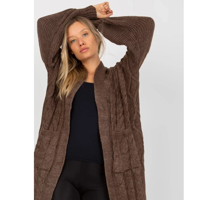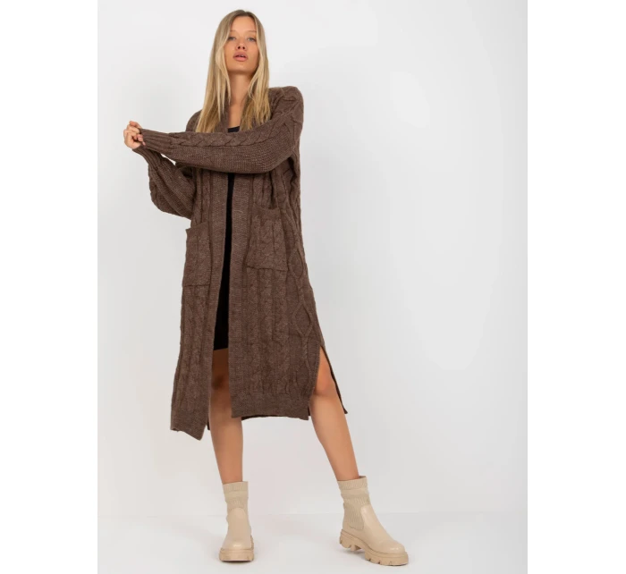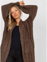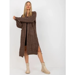 Hnedý maxi sveter s vreckami od značky RUE PARIS .