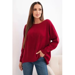 Dámsky sveter s dlhším chrbtom a vyrazenou hviezdou vo vínovej farbe