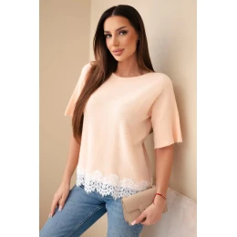 Dámsky sveter s krátkym rukávom a čipkou