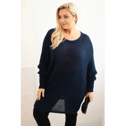 Dámsky sveter s mohérovým pončom Plus Size Blue
