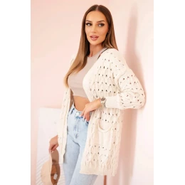 Tento dámsky kardigán s čipkovým vzorom je vynikajúcou voľbou pre ženy, ktoré si cenia pohodlie, štýl a originálny vzhľad. Je vyrobený z mäkkého a príjemného materiálu a má módny čipkový úplet, ktorý mu dodáva ľahký, ženský šarm. Dlhší strih sa hodí k legínam aj priliehavým džínsom. Kardigán má vpredu praktické vrecká, ktoré mu dodávajú funkčnosť, a absencia zapínania zdôrazňuje jeho uvoľnený, ležérny štýl. Je ideálny na chladnejšie jarné a letné dni a osvedčí sa aj ako štýlový doplnok do kancelárie alebo na prechádzku. Veľkosť je univerzálna a bude vyhovovať dámam vo veľkosti S, M alebo L.