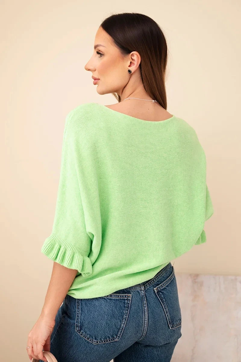 Dámsky sveter typu netopier s okrúhlym výstrihom jablko