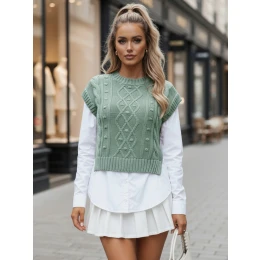 Kombinace krátkého svetru a košile v jednom umožňuje snadno sestavit vrstvené outfity bez přidávání dalších prvků. Pletený svršek s výraznou vazbou dodává strukturu, zatímco spodní část košile organizuje celek a působí elegantně. Kratší délka zdůrazňuje proporce a hodí se k sukním i kalhotám s vysokým pasem. Model je vhodný pro každodenní styling, do práce i na schůzky.