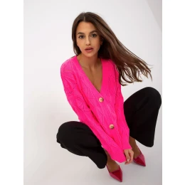 Fluo ružový ažurový sveter na gombíky od značky RUE PARIS .