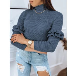 Dámský svetr BUFALO z jemného úpletu, žebrovaného a na dotek příjemného materiálu a minimalistického designu, s ozdobnými volánky na rukávech pro ležérní i společenský vzhled. K dostání v řadě barev.