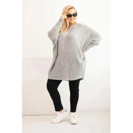 Dámský svetr Plus Size s šedý model 21397625 - K-Fashion