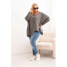 Dámský svetr Plus Size z model 21259036 s volným střihem a 3/4 rukávem grafitový - K-Fashion