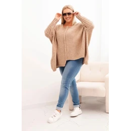 Dámský svetr Plus Size z model 21259032 volného střihu s 3/4 rukávem camelový - K-Fashion