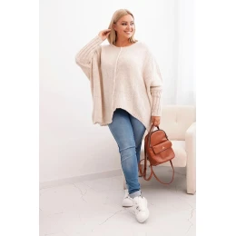 Dámský svetr Plus Size z model 21259040 volného střihu s rukávem 3/4 béžový - K-Fashion