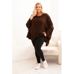 Dámský svetr Plus Size z model 21297042 s volným střihem a rukávem 3/4 hnědý - K-Fashion