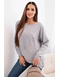 Dámsky sveter s dlhším chrbtom a vyrazenou hviezdou sivej farby